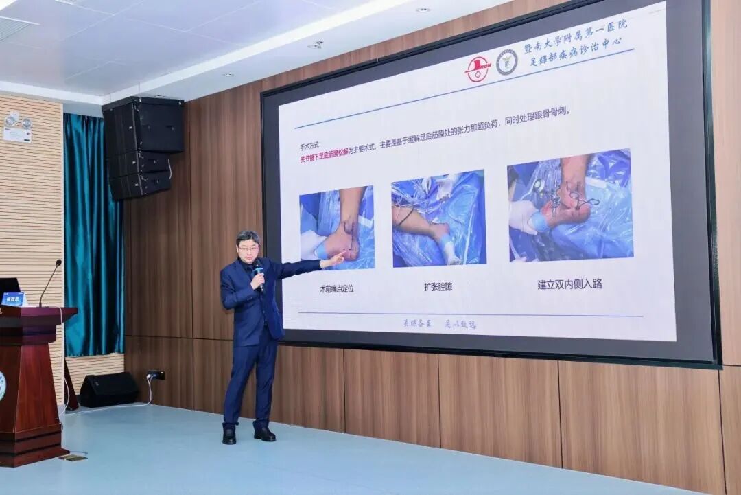 暨南大学附属第一医院侯辉歌教授针对“足底筋膜炎”的微创手术治疗要点进行授课及实操演示;