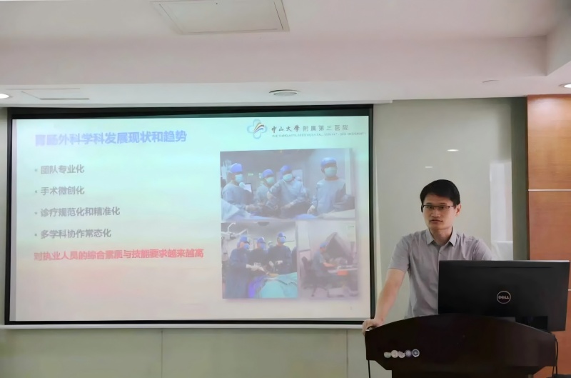 中山大学附属第三医院胃肠外科学科带头人卫洪波在致辞时首先对协会考察组的到来表示欢迎和感谢。卫主任表示,胃肠外科是国家级重点学科、卫生部国家级临床重点专科普通外科的主要分支,目前已发展成为集医、教、研为一体,在国内外有广泛学术影响的临床科室,是中国医师协会结直肠肿瘤专委会微创解剖学组主委单位、广东省医师协会微创外科分会主委单位、广东省临床医学会胃肠专委会主委单位、教育部外科学博士生培养点、卫计委住院医师培训基地及县级医院骨干医师培训基地。