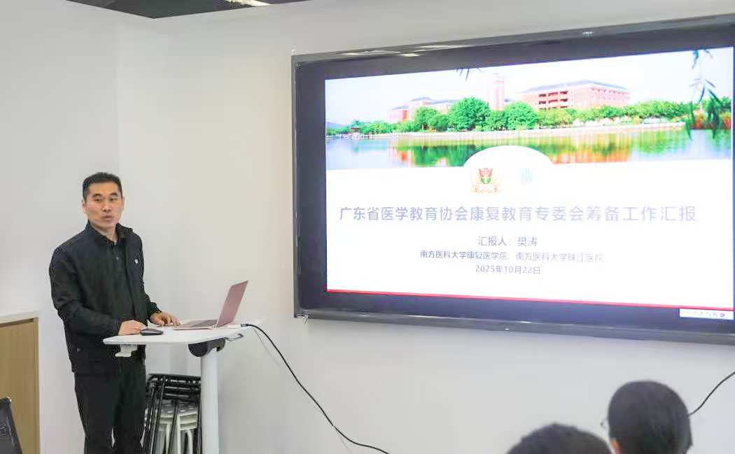 2025年10月22日,广东省医学教育协会康复教育专业委员会筹备工作现场考察会议在南方医科大学康复医学院召开。广东省医学教育协会会长兼考察组组长罗良平、医学教育专家委员会主席周增桓、 副会长兼秘书长李海燕、业务部部长邬冰彬,南方医科大学珠江医院副院长张宏征、康复医学院副院长、康复医学中心主任吴文、康复医学院副院长、康复医学中心副主任(专委会筹备组组长)樊涛、康复医学院教研办主任邹积华等相关工作人员参加了此次活动。