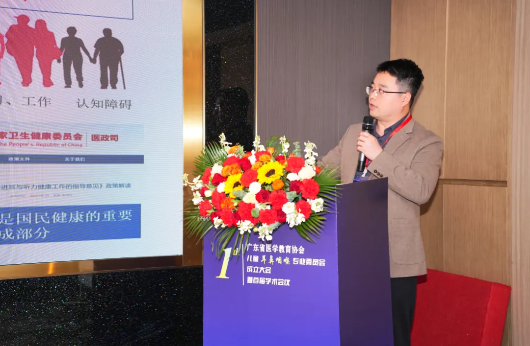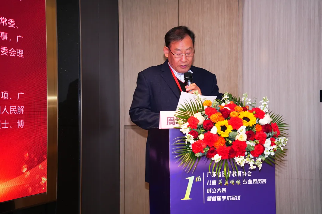 南方医科大学珠江医院党委副书记黄惠根教授代表主委单位致辞:医院将全力支持专委会工作,共同推进和促进广东省儿童耳鼻喉科事业的发展。
